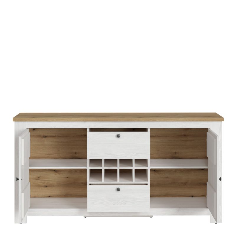 Celesto 2 Door 2 Drawer Sideboard with Wine Rack in White and Oak