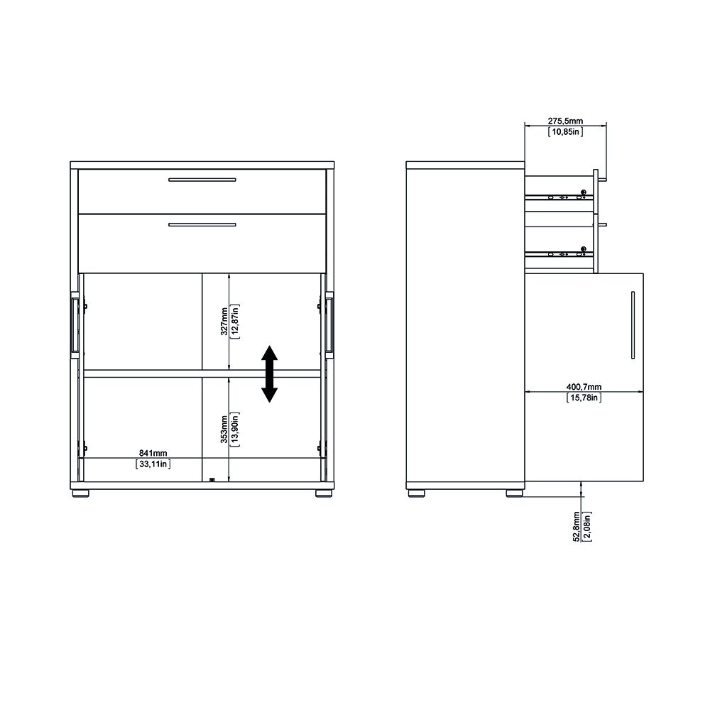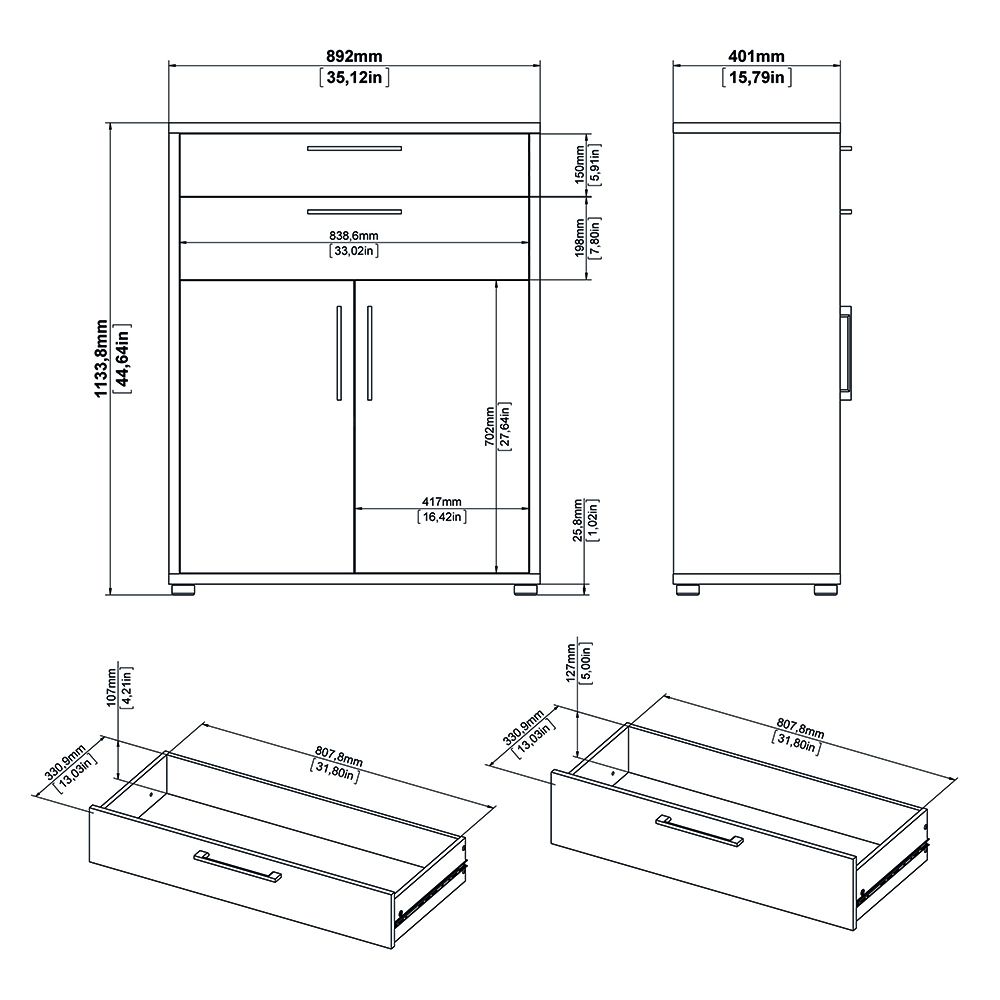 2 Doors (Bottom): Concealing a large cupboard space at the base, this section provides out-of-sight storage for files, bulkier office supplies, or items you want to keep secure and dust-free. The cupboard typically contains one internal shelf.