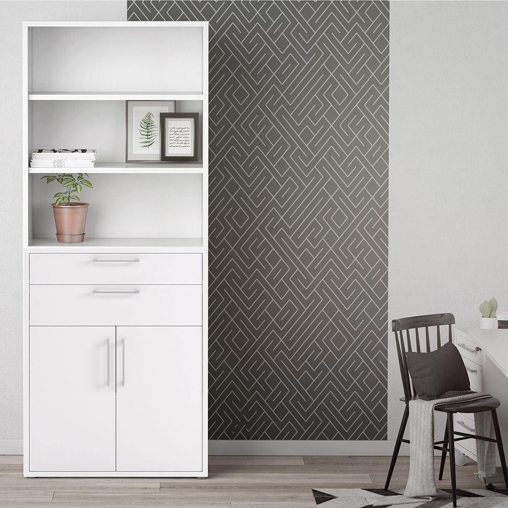 Finish: Features a uniform, crisp White finish, typically a durable matt laminated board, providing a bright, clean, and highly versatile aesthetic consistent with the Prima collection.