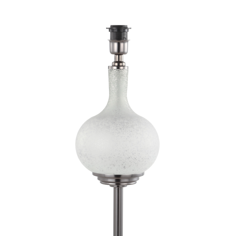 Crafted from silver frost glass, giving the base a smooth, pearlescent finish with a subtle metallic shimmer.