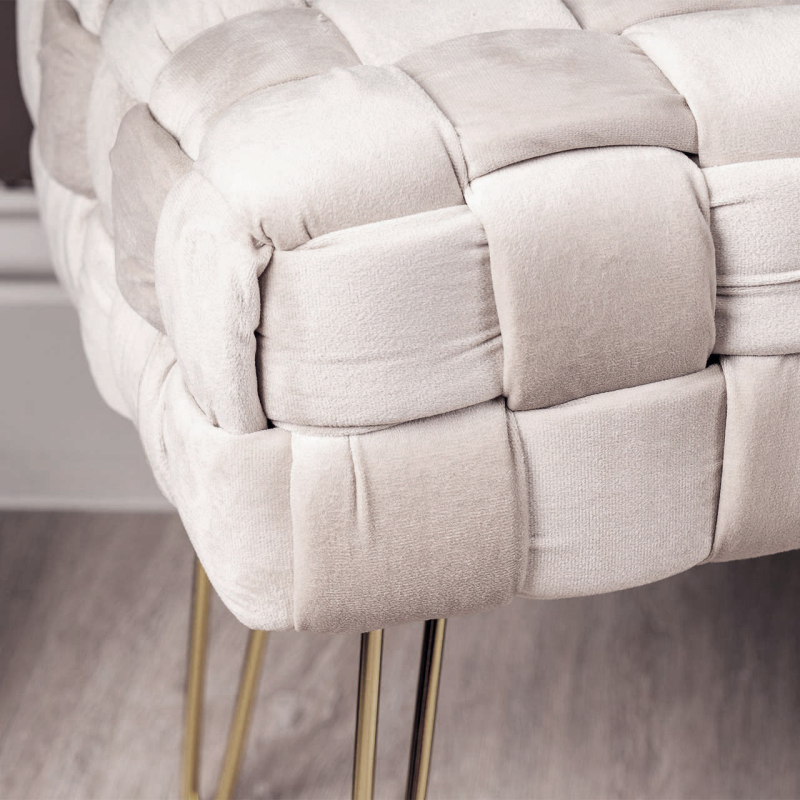Supported by sturdy gold metal legs that provide a chic contrast to the velvet seat.