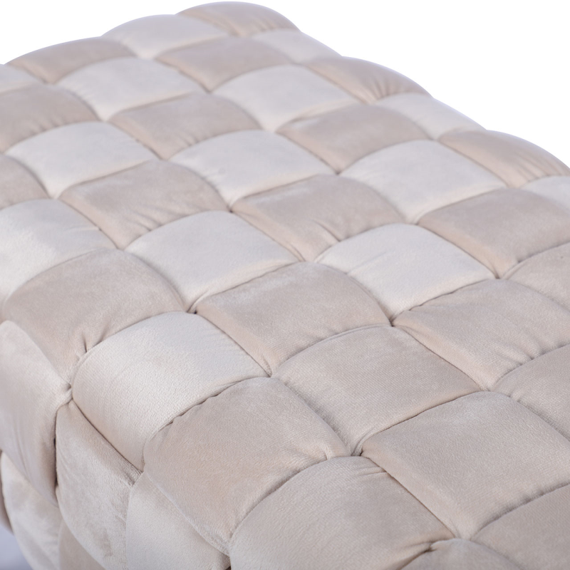 Features an intricately woven seat design, giving the bench a rich, dimensional look.