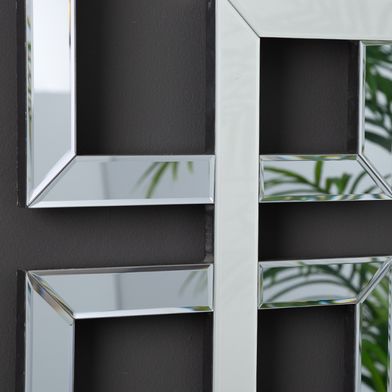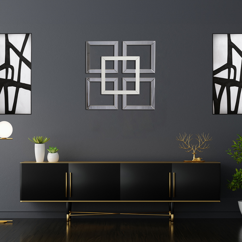 Features a combination of smoked grey and silver mirrored panels, offering a striking layered look that adds depth and dimension to any space.