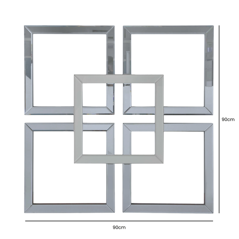 The 90×90 Smoked and Silver Glass Mirror blends sleek contemporary style with subtle contrast, creating a refined and elegant wall feature.