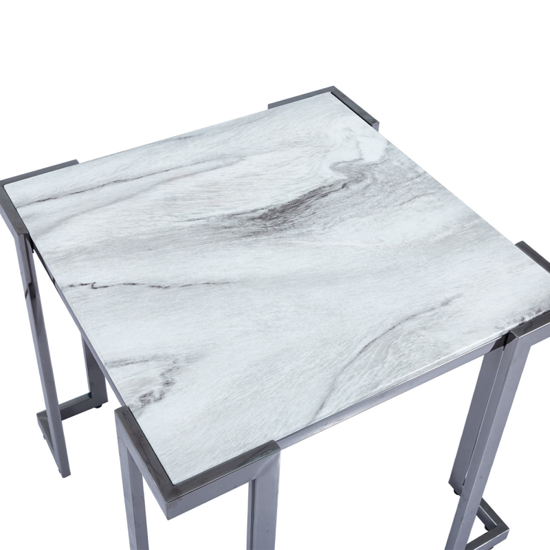 Aamari Grey Gunmetal End Table with White Faux Marble Glass Top – KD