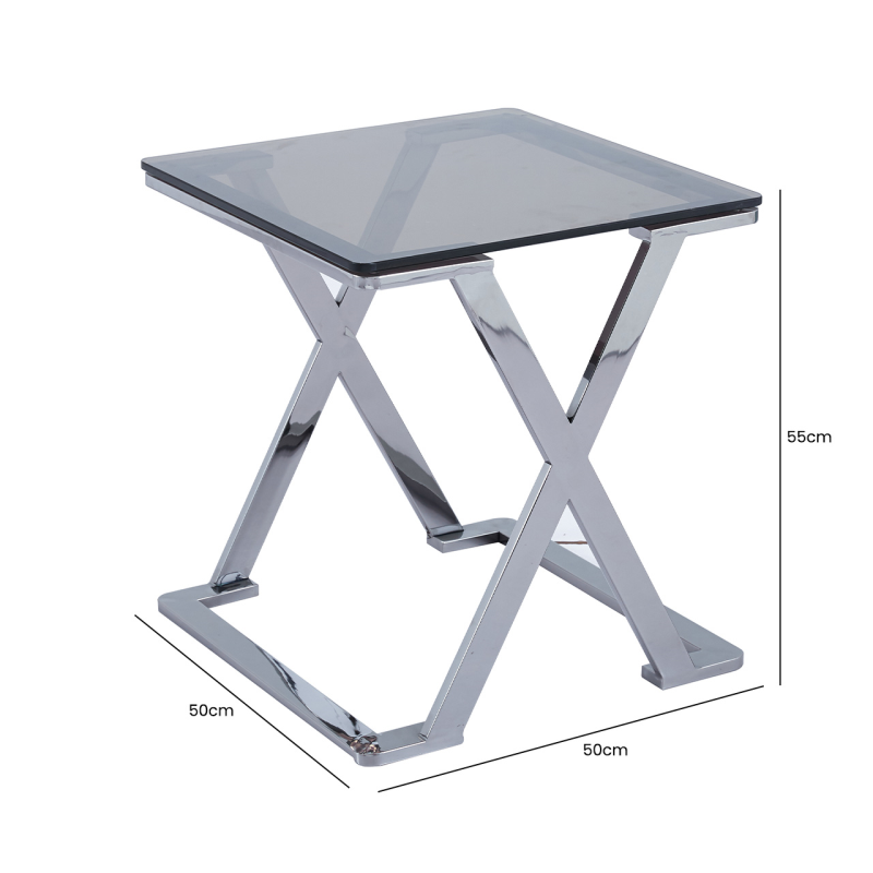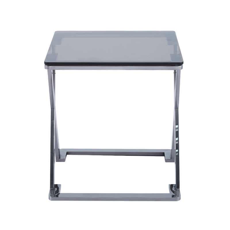 Axel Grey Gunmetal End Table with Smoke Glass Top
