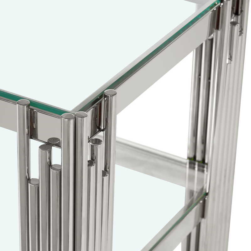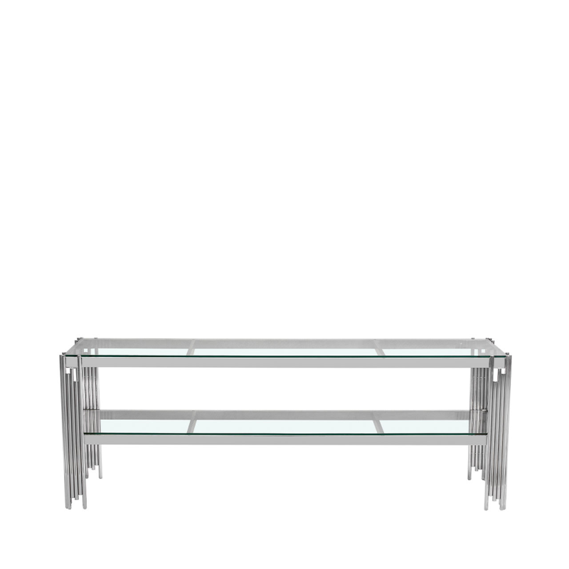 The Cohen Chrome Steel Tubes Entertainment Unit combines sleek modern lines with a touch of sophistication, making it a standout centerpiece for any living or media space.
