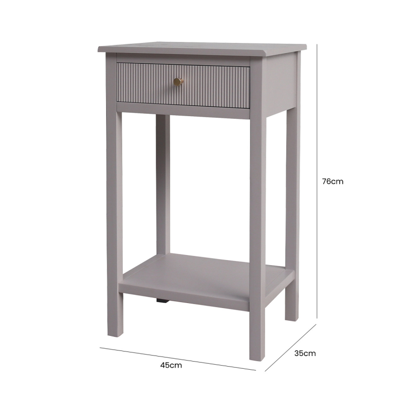 The Lindon 1 Drawer End Table in Summer Grey combines modern elegance with functional storage, making it a perfect addition to living rooms, bedrooms, or offices.