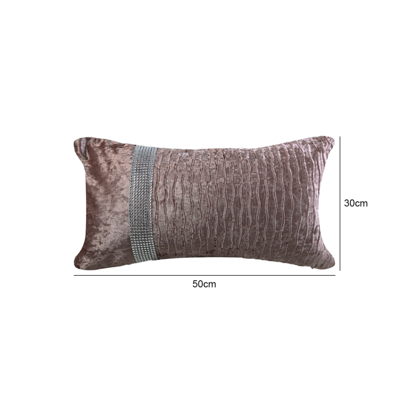 Unfilled 30×50 Crushed Velvet Band Cushion Cover (Blush Pink)