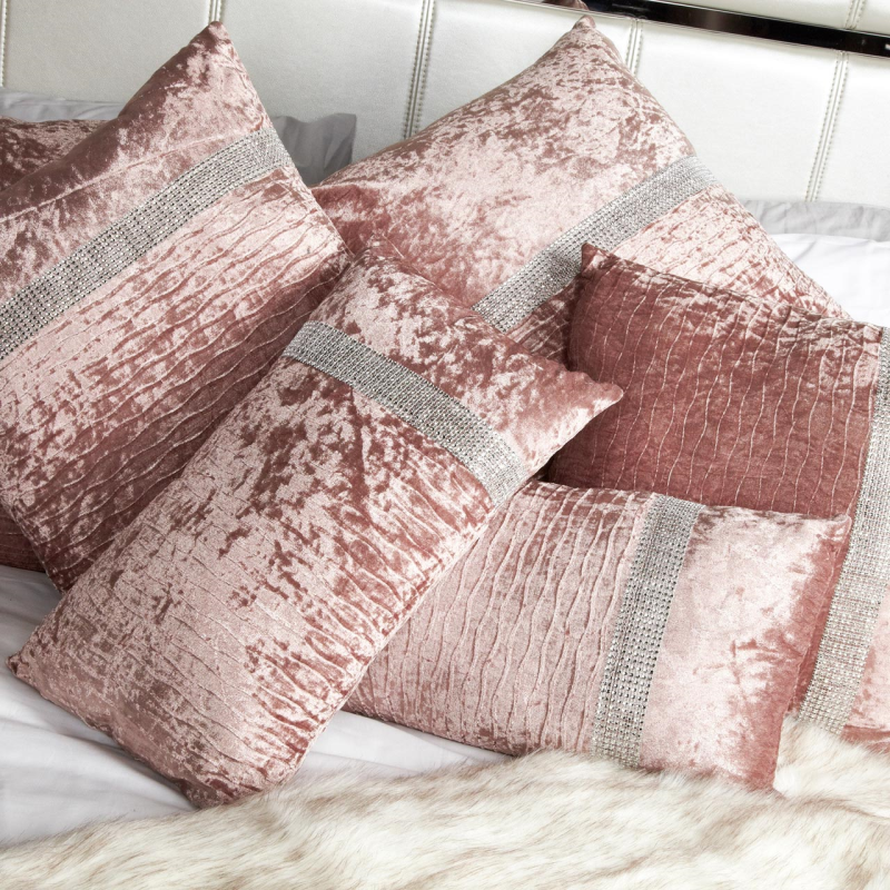Add a touch of elegance and texture to your home d?cor with this beautiful crushed velvet band cushion cover in a soft blush pink shade. Its smooth texture and decorative band design create a stylish and refined look that enhances any interior.