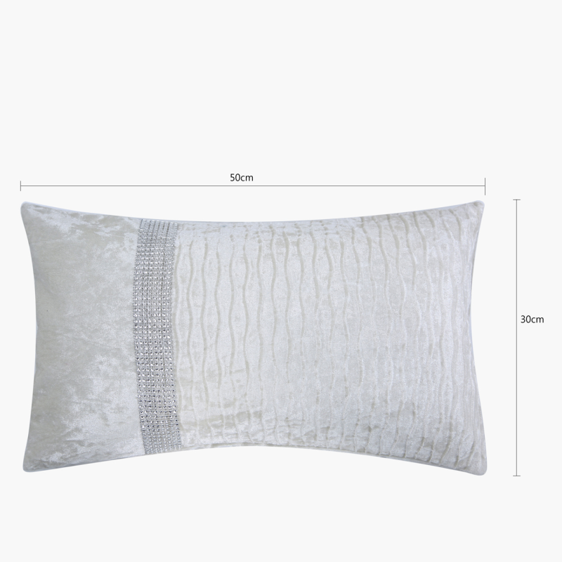 Unfilled 30×50 Crushed Velvet Band Cushion Cover (Ivory)