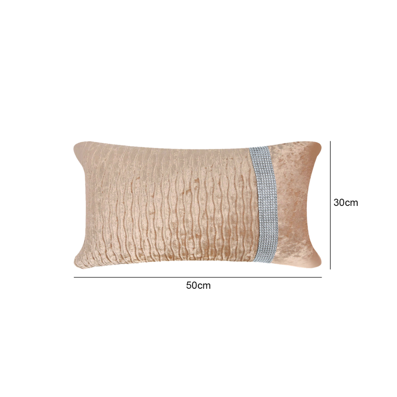 The Crushed Velvet Band Cushion Cover (30×50 cm) in Natural adds a touch of refined luxury to any room, ideal for living rooms, bedrooms, or lounges.