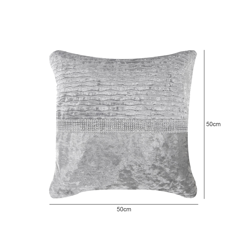 Bring modern elegance to your home with this luxurious crushed velvet cushion cover in a sophisticated grey shade, featuring a refined diamond stripe pattern for timeless style.