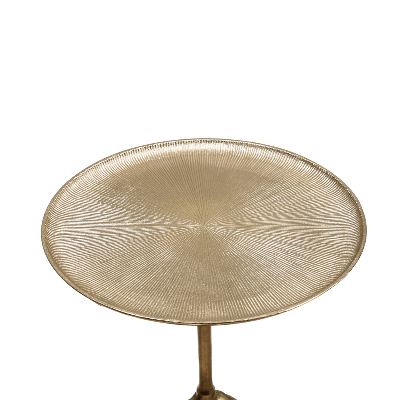 Standing at 60cm tall, it’s ideally sized to function as a side table beside a sofa, an accent piece in a hallway, or even as a chic bedside companion. The sturdy metal construction ensures durability, while the golden finish adds warmth and a luxurious glow to your décor. With its sculptural design and contemporary appeal, this accent table instantly elevates any living space, blending functionality with artful style.