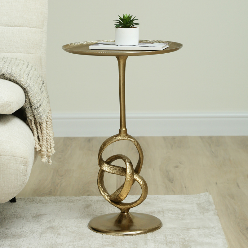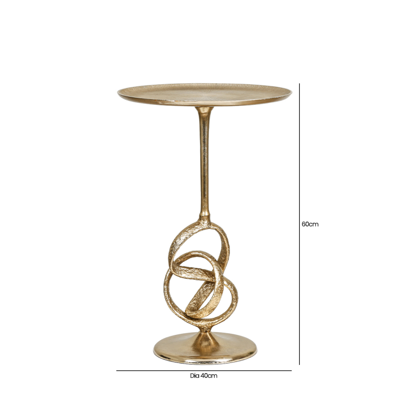 The 60cm Gold Twisted Metal Accent Table is a striking statement piece that brings a touch of glamour and sophistication to any interior. Designed with a beautifully sculpted twisted metal base in a radiant gold finish, this table exudes modern elegance while showcasing a unique artistic flair. Its compact round top provides the perfect surface for displaying decorative accents, a lamp, or for holding drinks and essentials.