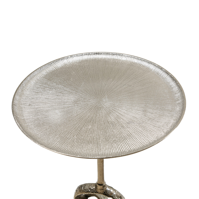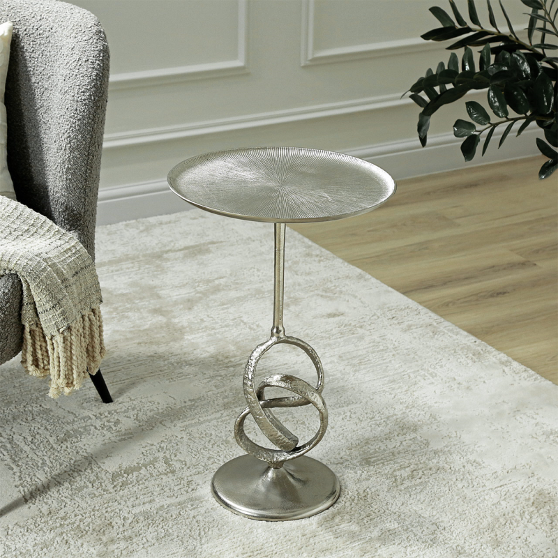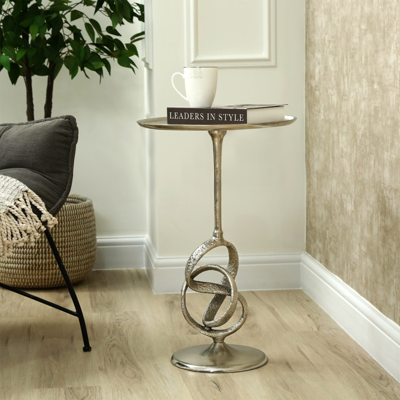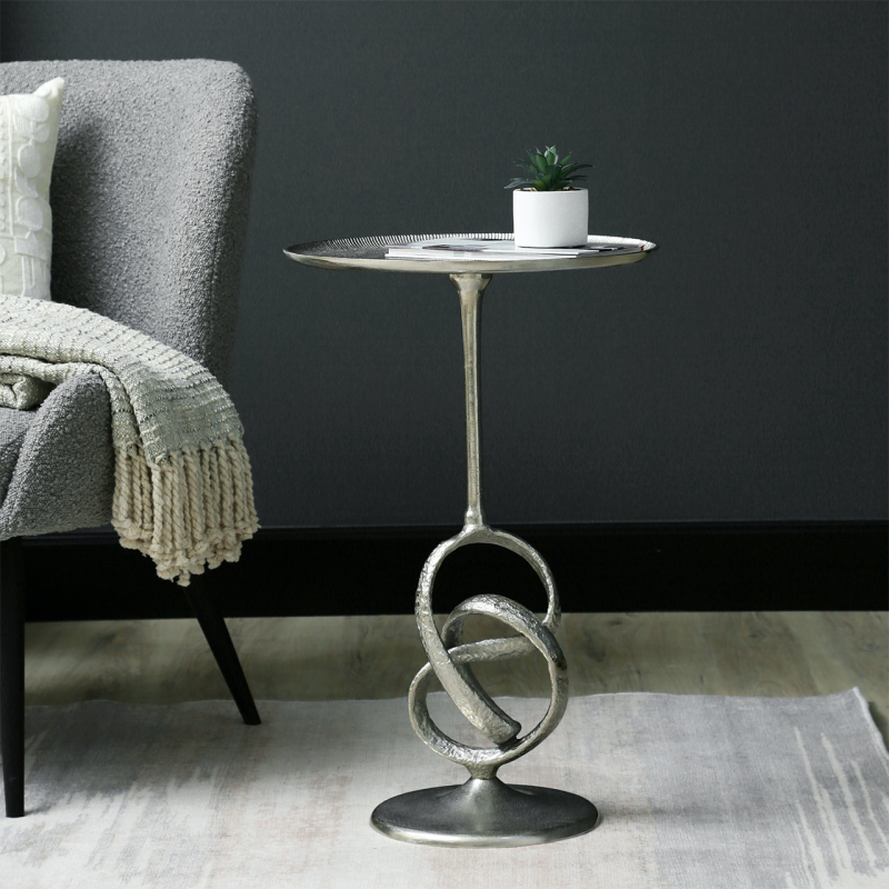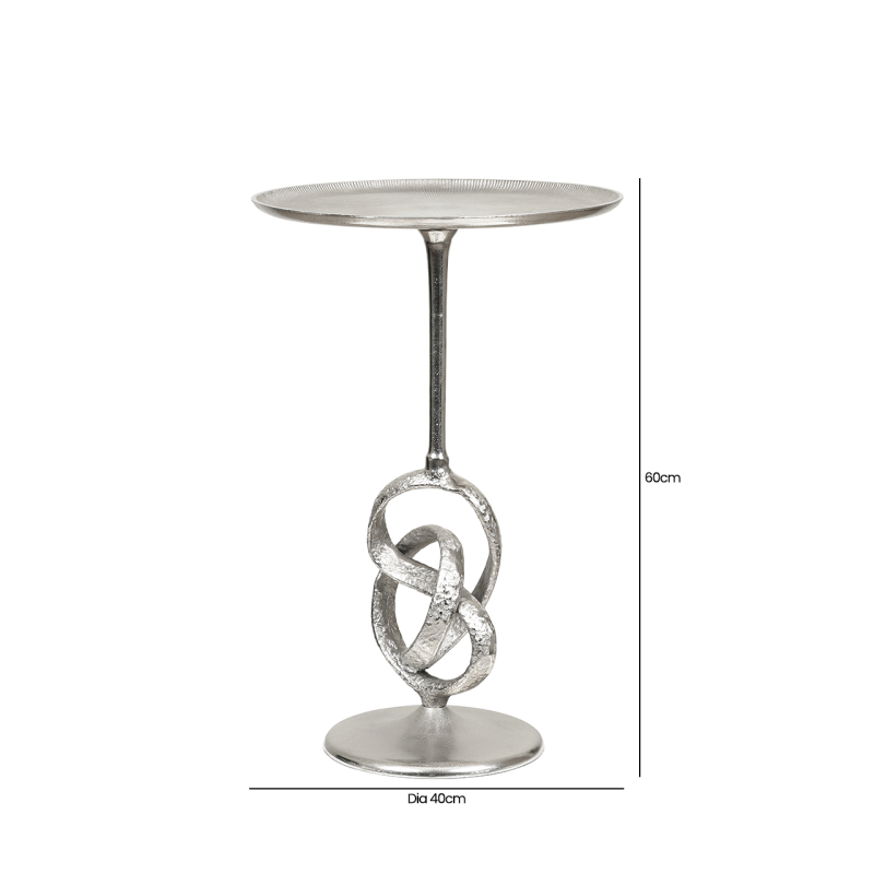 The 60cm Nickel Twisted Metal Accent Table is a stunning fusion of modern artistry and practical design. Featuring a sculptural twisted metal base finished in sleek nickel, this table stands out as a sophisticated statement piece. Its reflective metallic tone adds a contemporary edge while blending seamlessly with a variety of interior styles, from modern luxe to industrial chic.