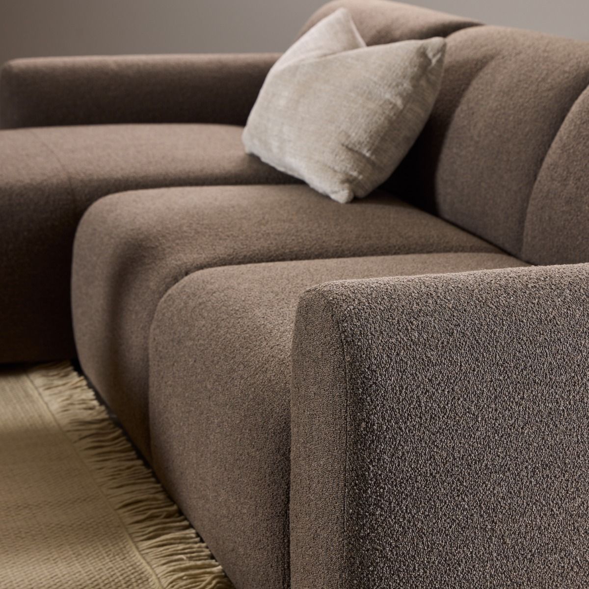 The Midfield Left Hand Facing 2 Seater Chaise Longue in Boucle Taupe Fabric is a modern and comfortable seating option designed to bring both style and relaxation to your living space. With its sleek lines and contemporary design, this chaise sofa is a perfect addition to modern homes, offering a cosy yet sophisticated look.